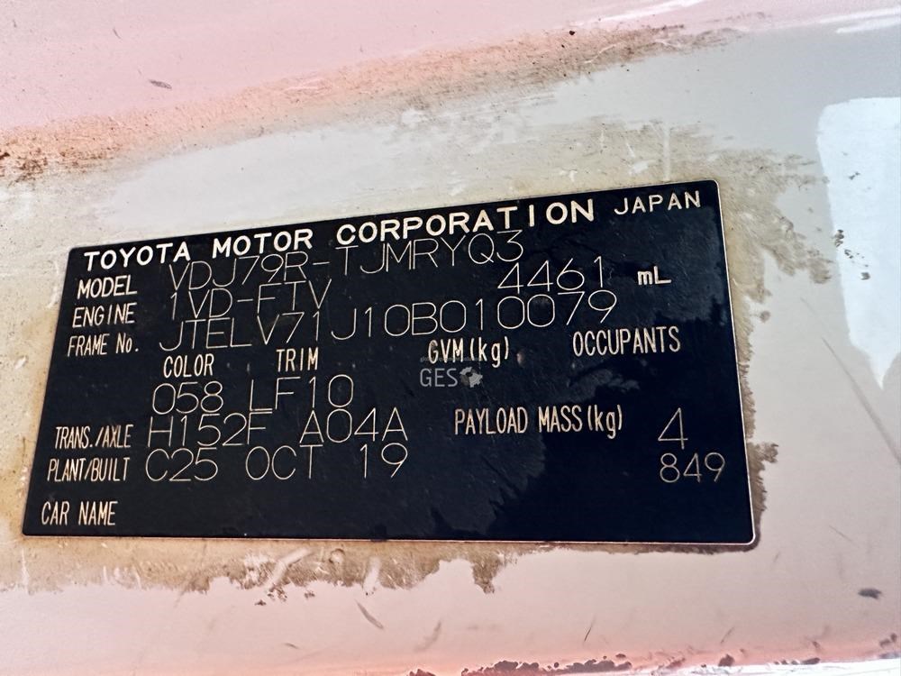 2019 Toyota VDJ79R Land Cruiser cab chassis no tray Non running