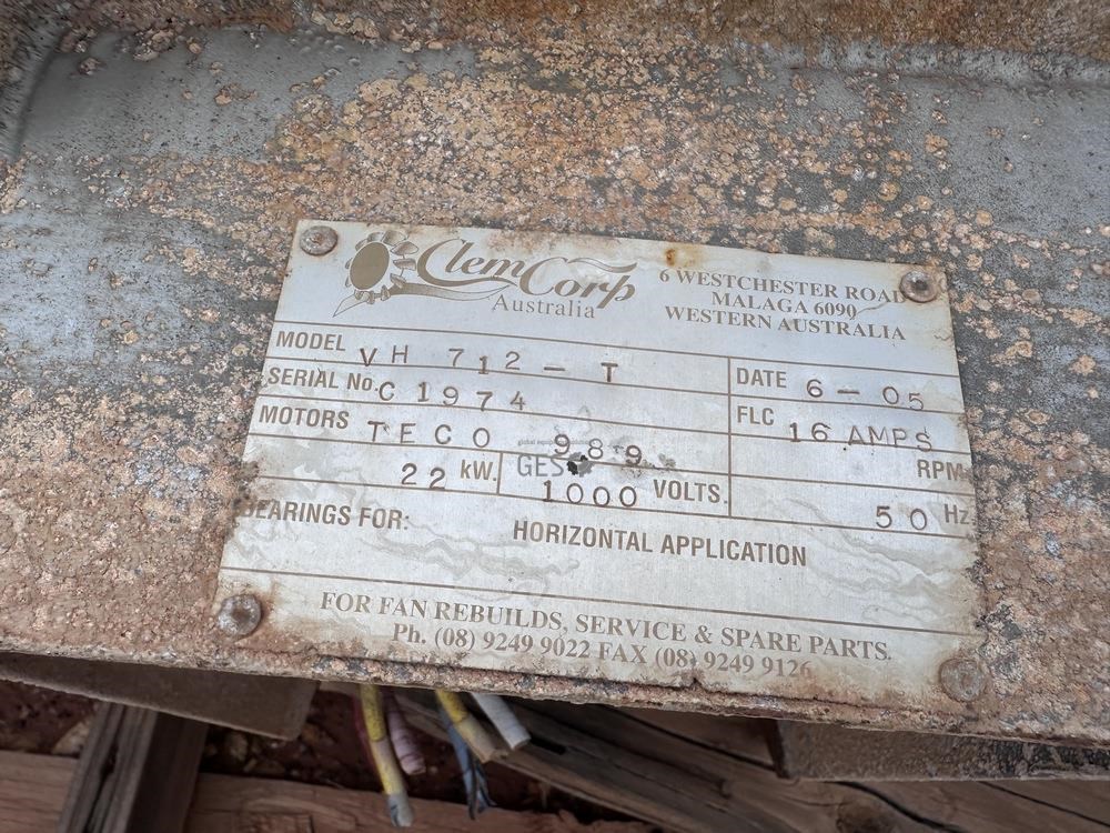 2005 Clemcorp 22 KW 1000 volt VH712-T Vent Fan with intake grille
