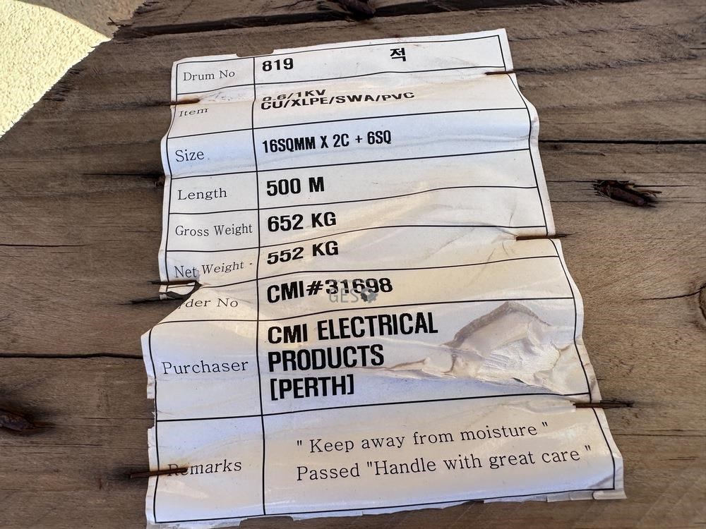 CMI Electrical 16 mm2 2C + 6 mm2 x 500 mtr drum .6/1KV/CU/XLPE/SWA/PVC Unused