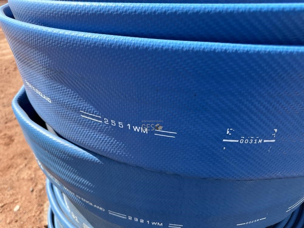 - Model 4 inch Wellmaster 250 flexible rising main lay flat hose rolls x 6 rolls unused