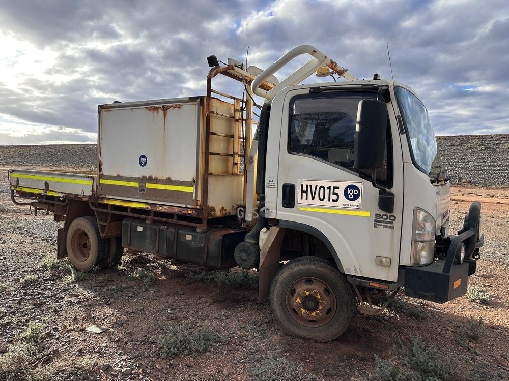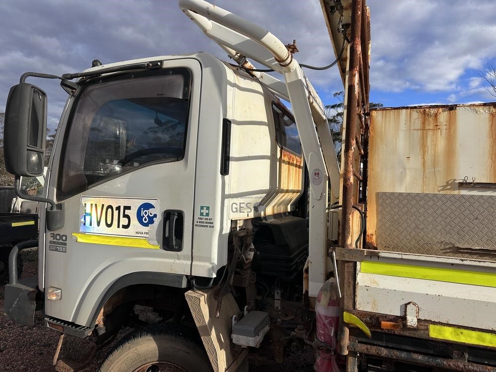 2010 Isuzu NPR300 Sitec 155 Euro IV 4x4 tray truck with crane non running