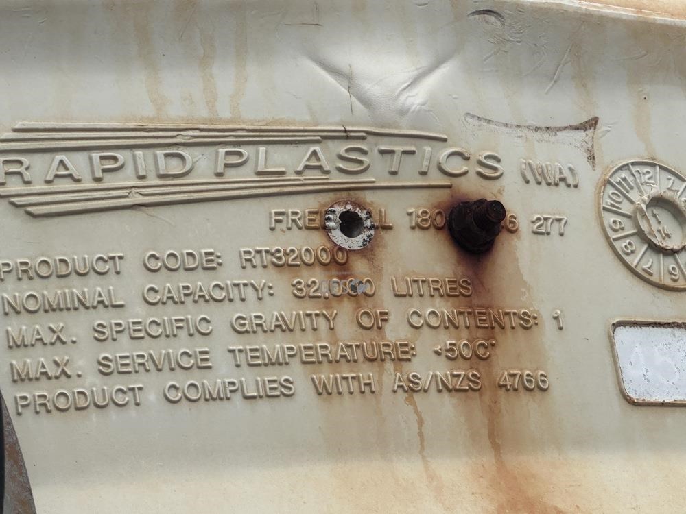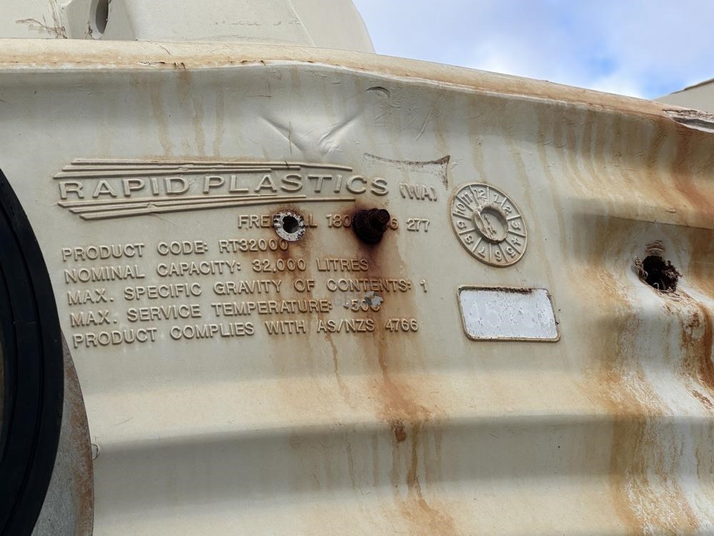 2014 Rapid Plastics 32 KL poly tank RT32000 with fittings Used
