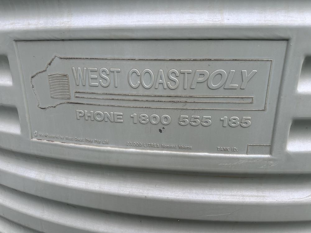 West Coast Poly 23 KL poly tank with fittings Used