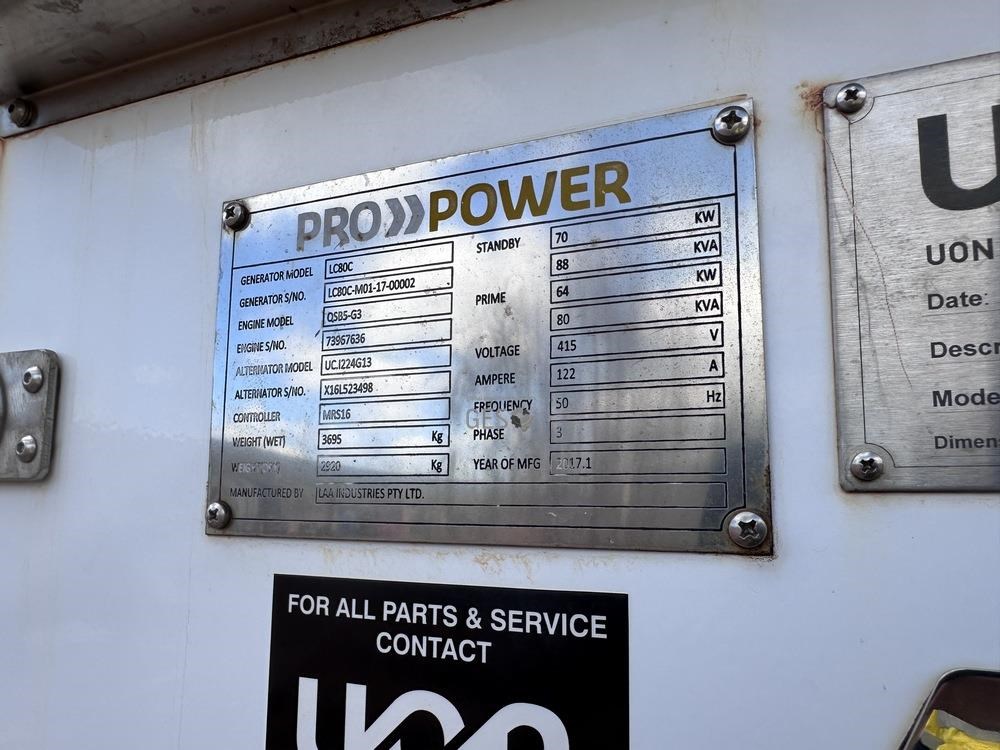2017 UON 80 KVA LC80C Generator non running