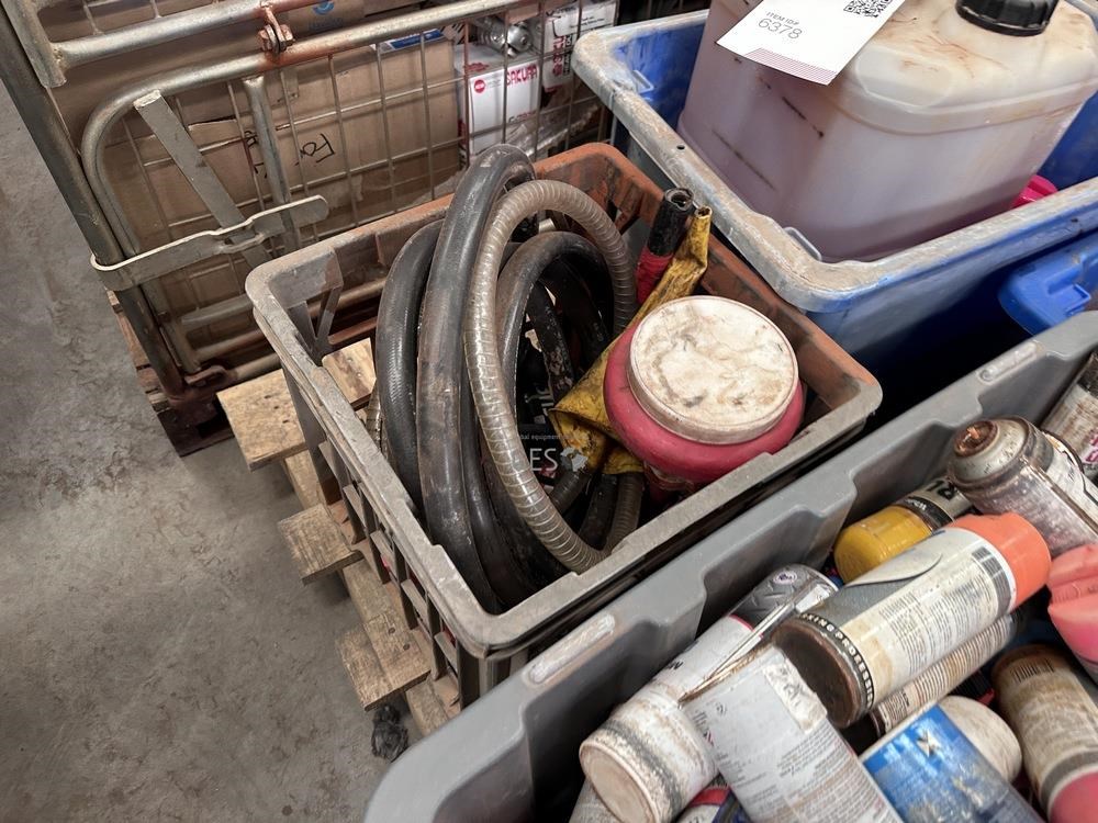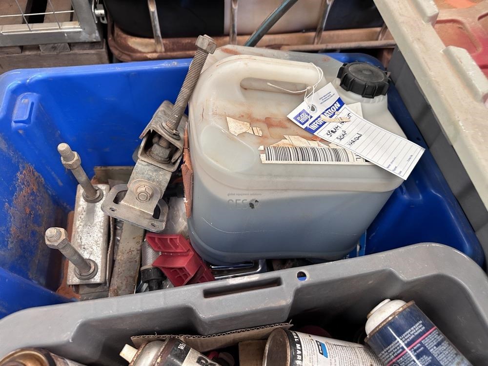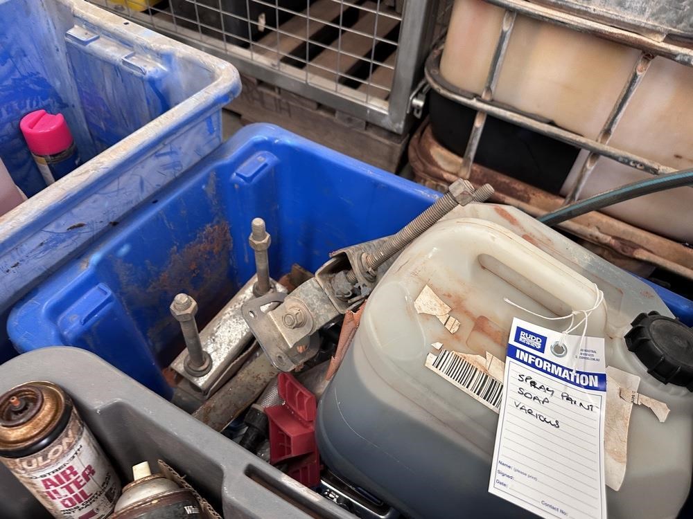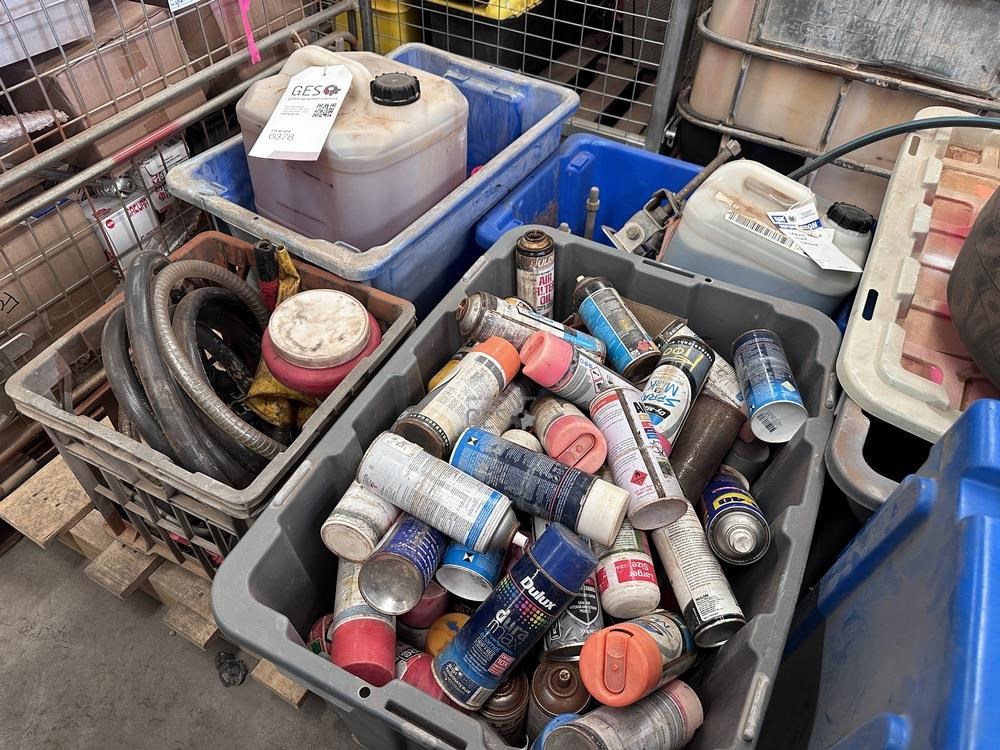 Paint spray cans, cleaning liquids and misc item on pallet