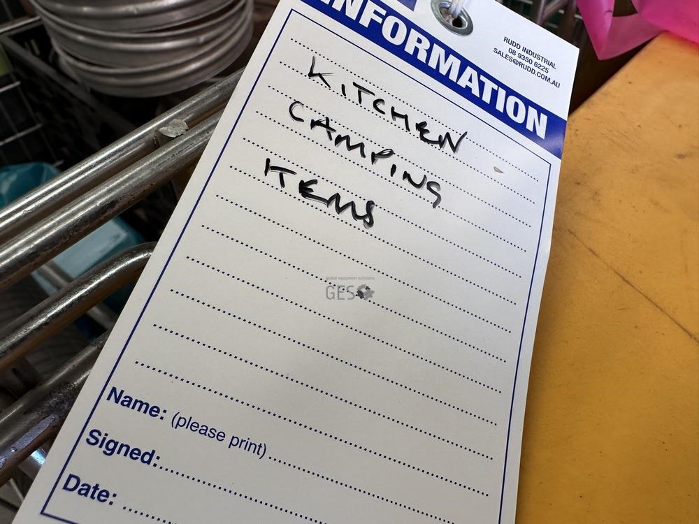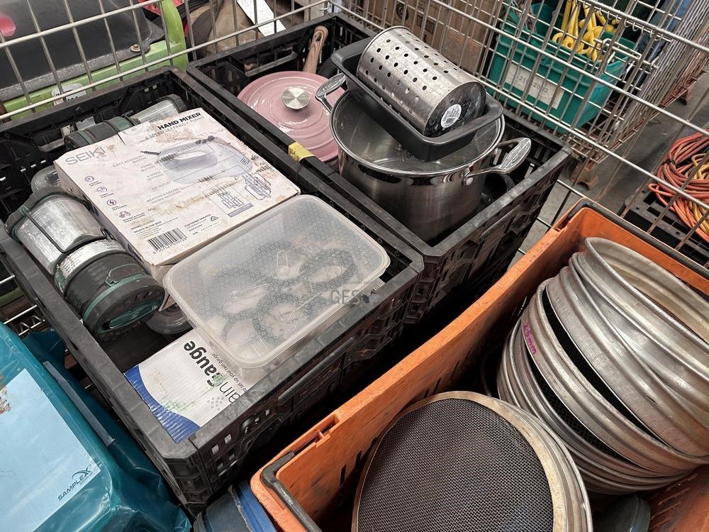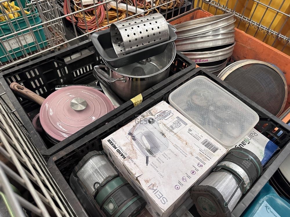 - Model Kitchen camping items and exploration sieves in pallet cage