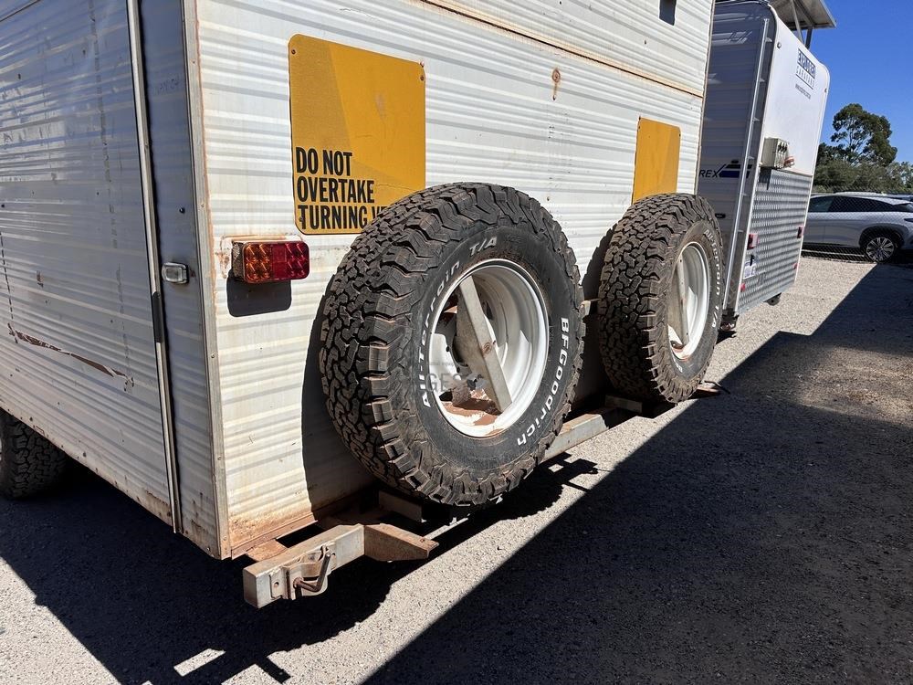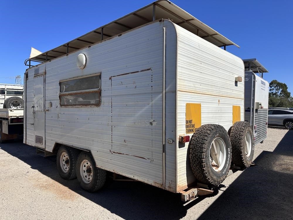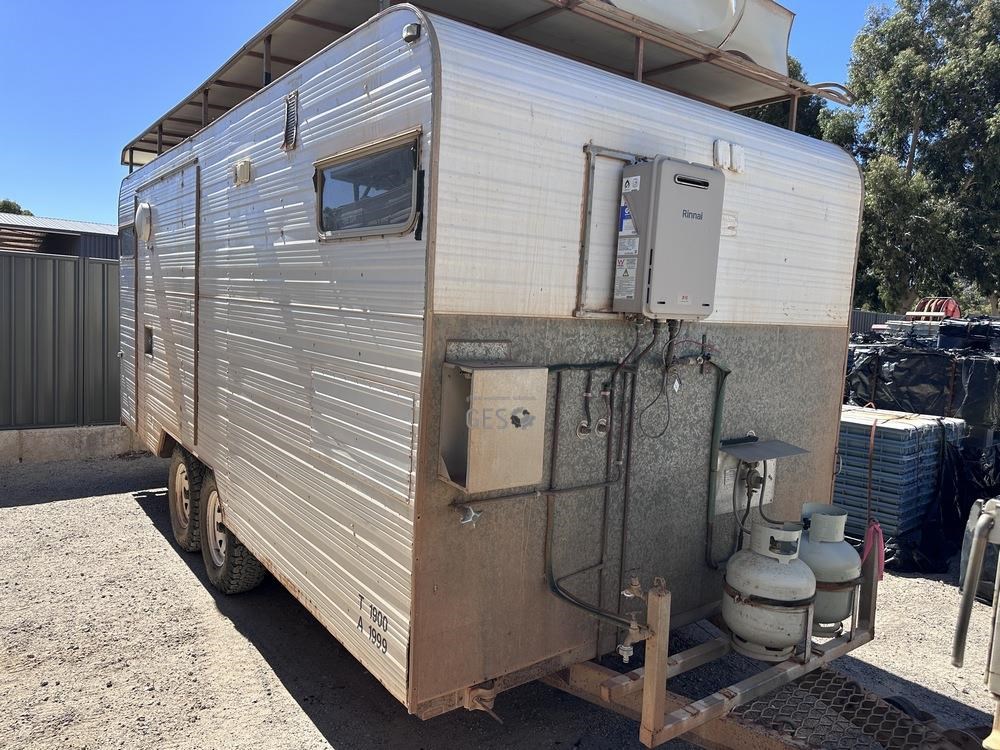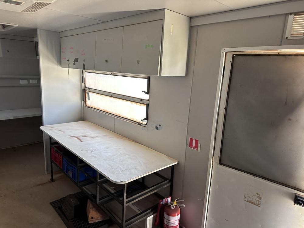 1988 Modern 5.5 mtr Kitchen & office caravan with appliances. Registration can only be transfered to a Western Australia address. Offered for sale in "As Is Where Is" condition, the buyer is responsible for preparation and lifting on to buyers transport ex Midvale, WA.