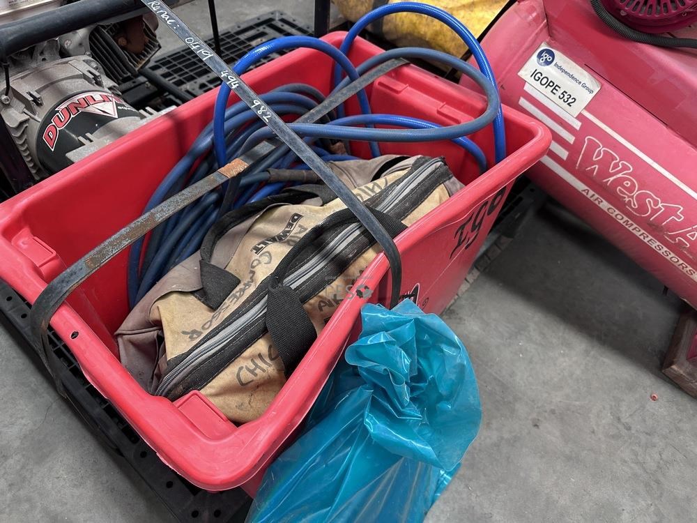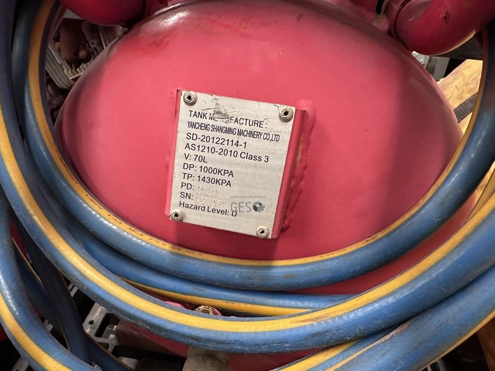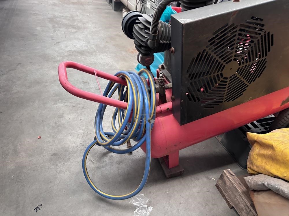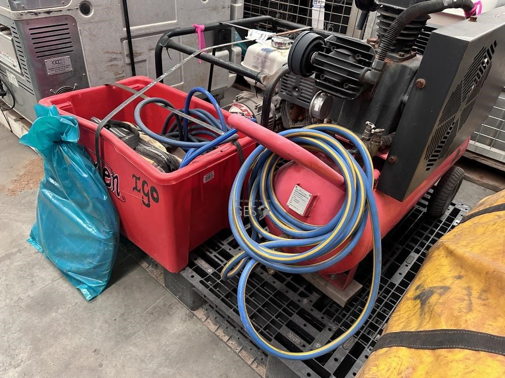 - Model 6.5HP petrol drive air compressor 70 litre receiver untested with crate of air hoses
