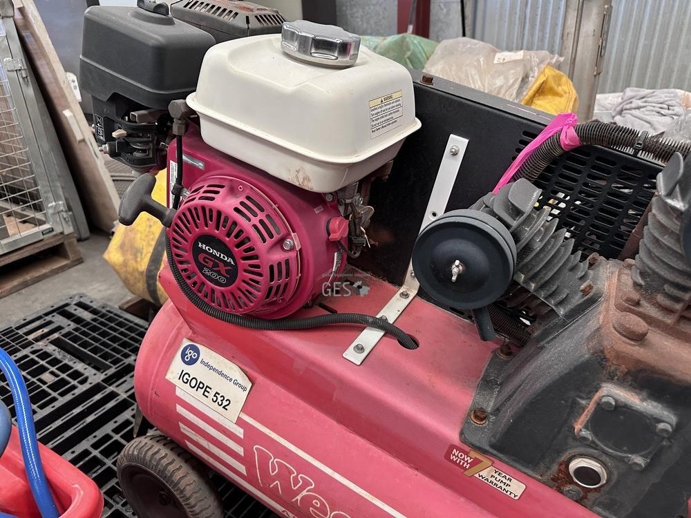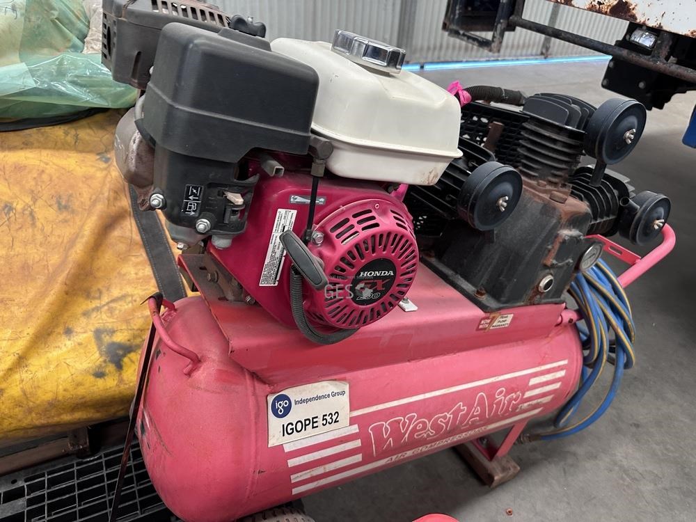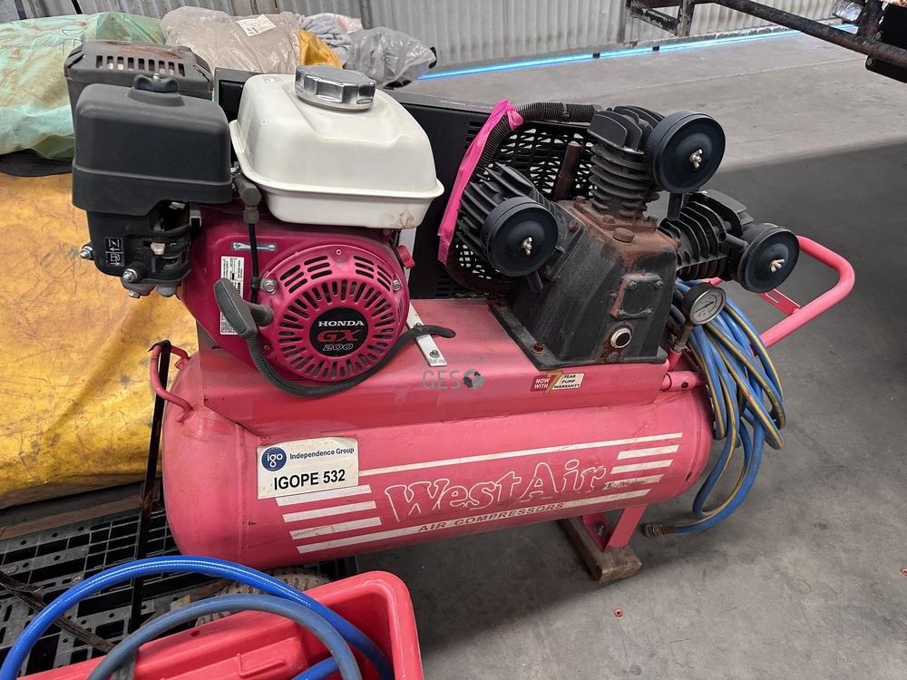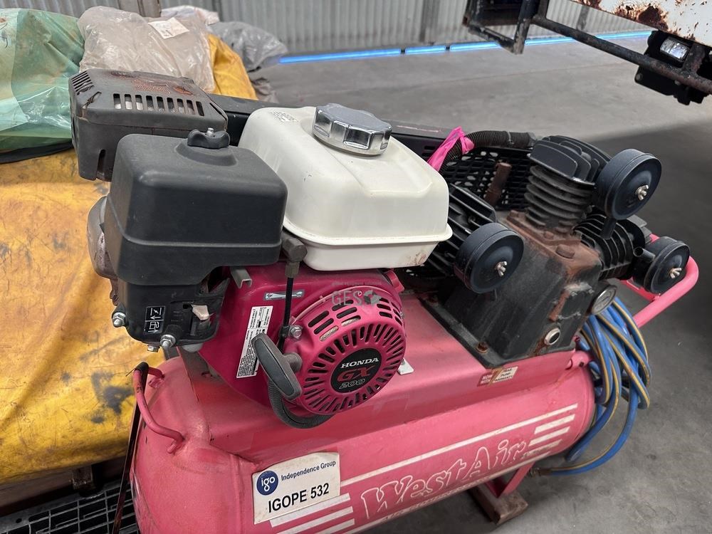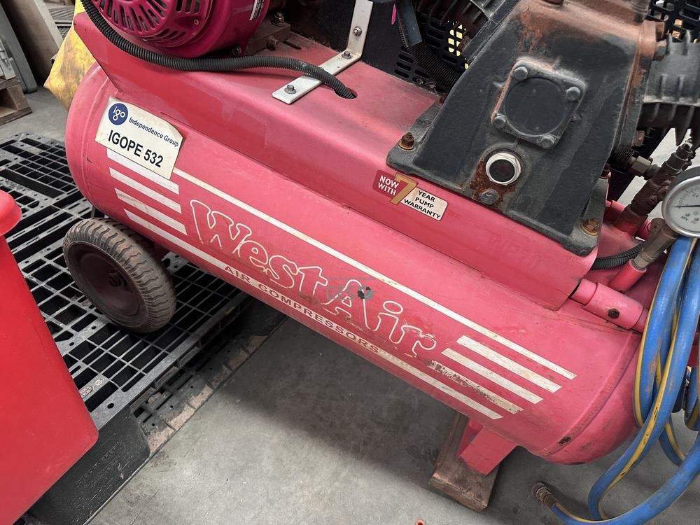 West Air 6.5HP petrol drive air compressor 70 litre receiver