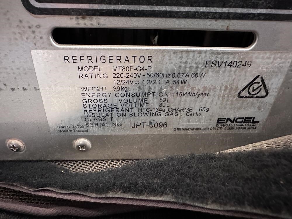 - Model MT-V MT80F-G4-P 89 litre refrigerator with travel cover