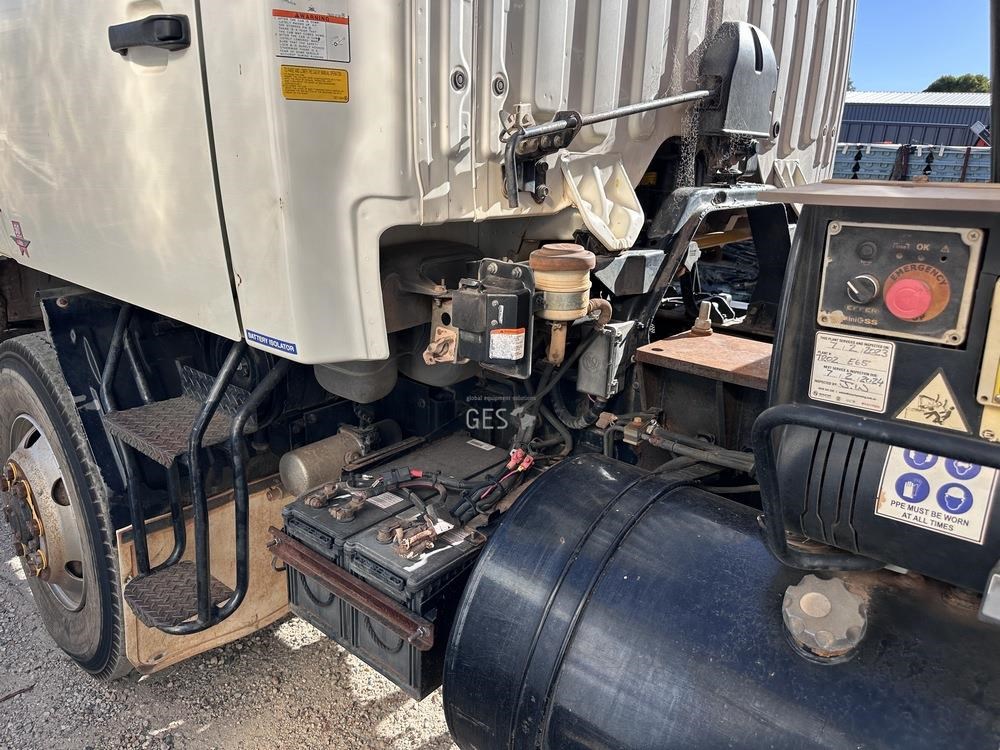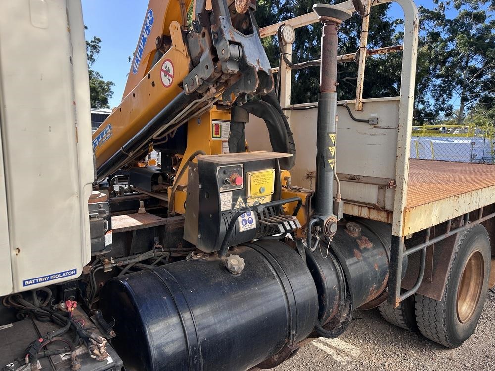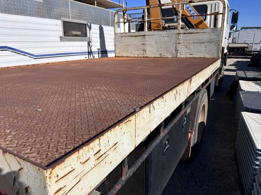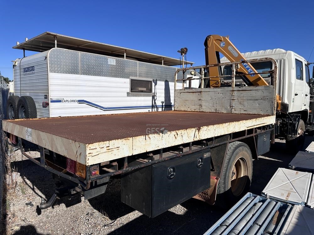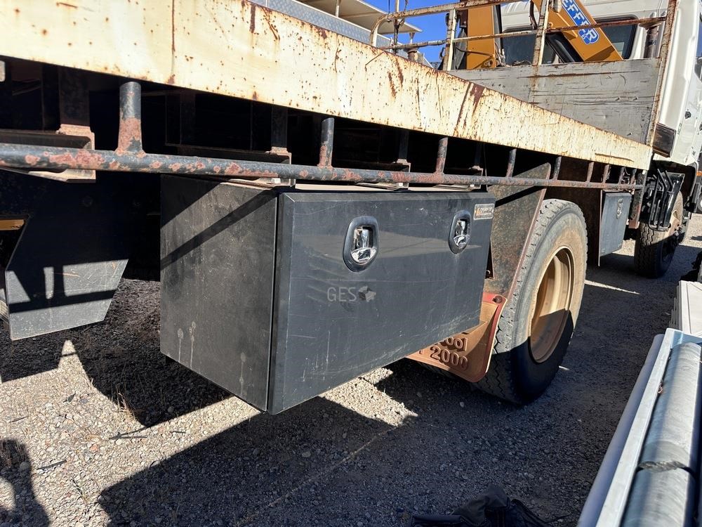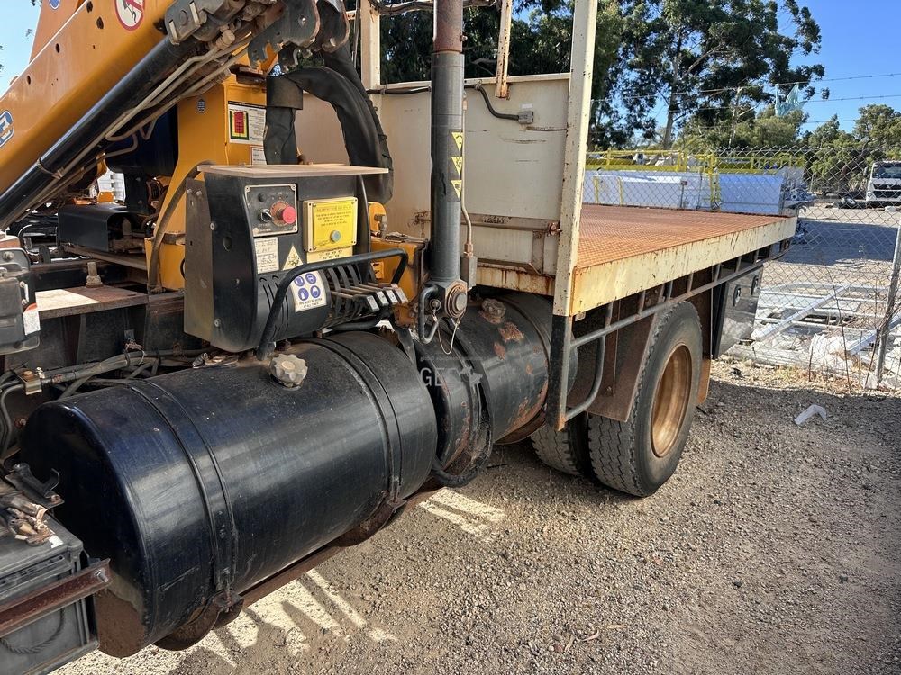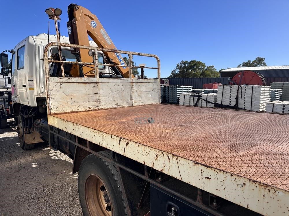 2014 Hino GT1JSER 2 500 1322 automatic Euro 5 dual cab 3.8 mtr single axle tray truck with Effer 65. Registration can only be transfered to a Western Australia address. Offered for sale in "As Is" condition, running to drive on to buyers transport ex Midvale, WA.
