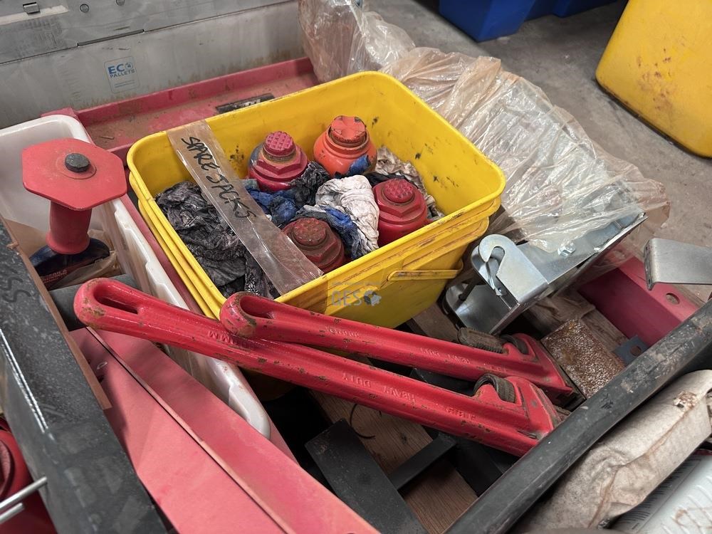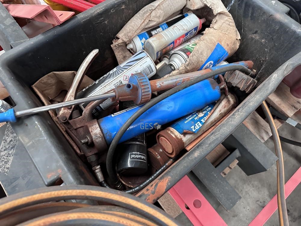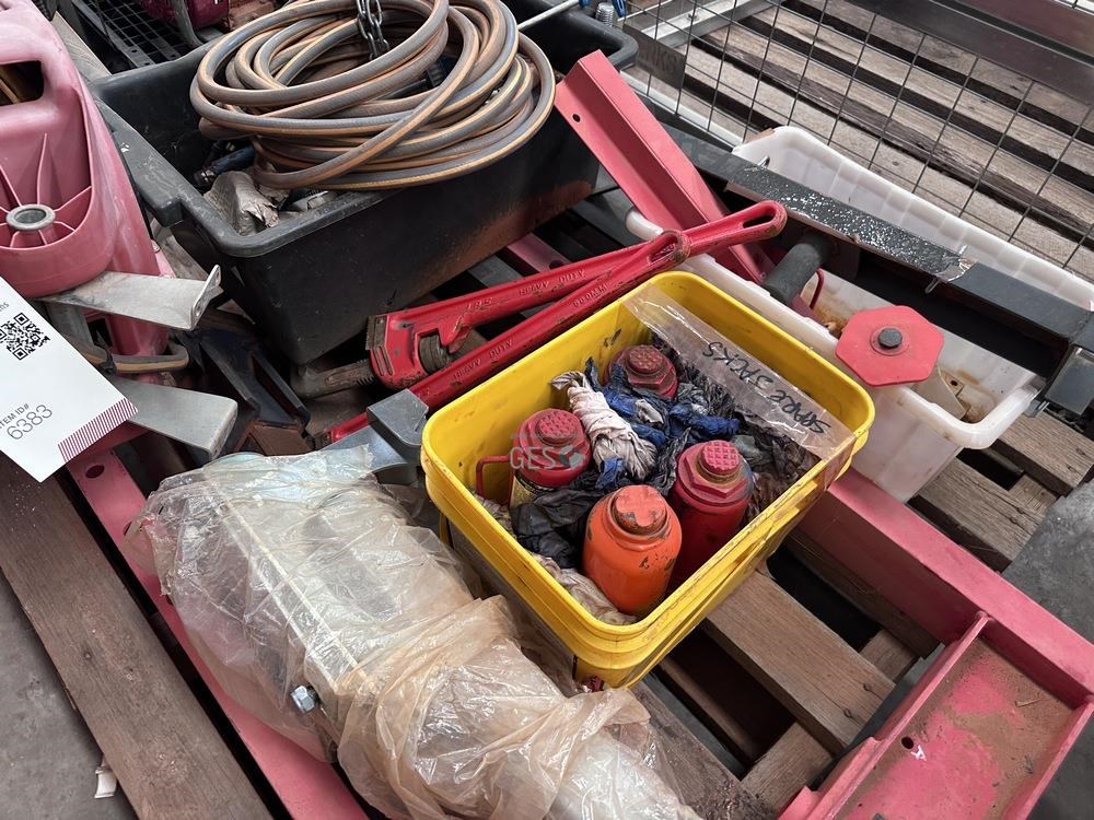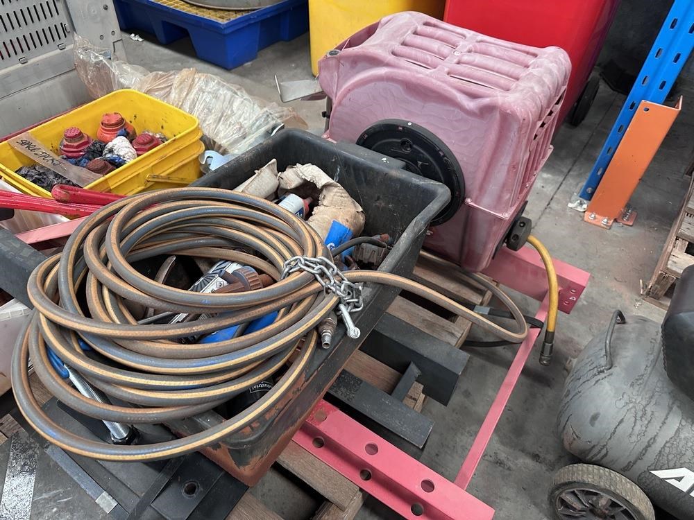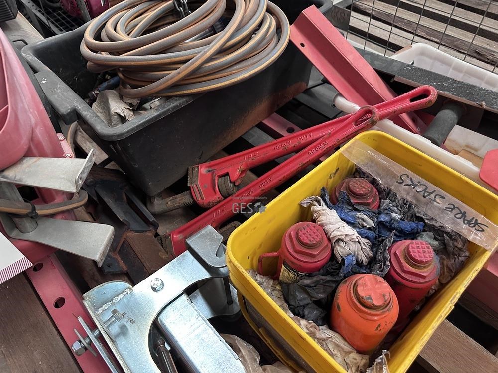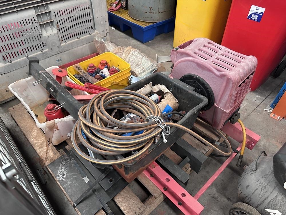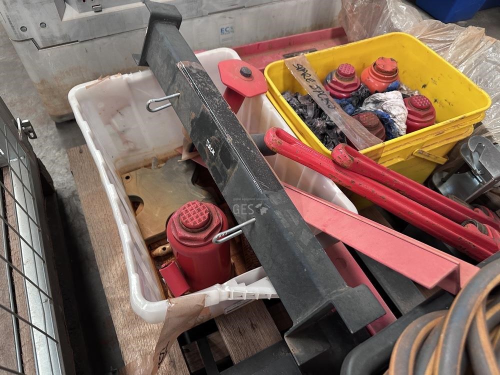 - Model Package of Retractable air hose, bottle jacks, tools, tyre carrier bracket and misc items on pallet