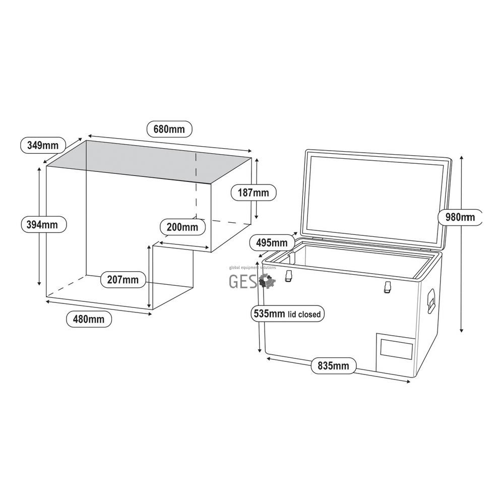 - Model Legacy 80 litre single bin single lid fridge with travel cover