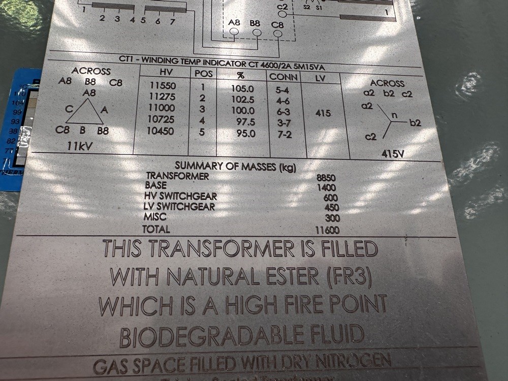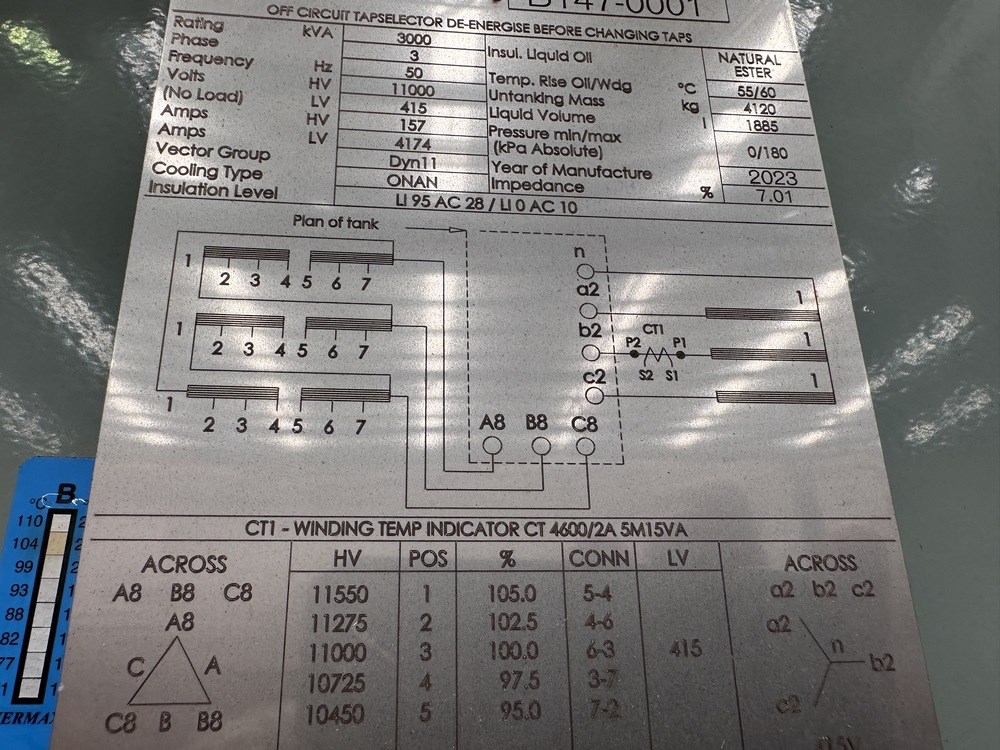 2023 Wilson 3000 kVA 11/0.415 KV Dyn11 ONAN TX, Siemens RMU & NHP 3000 Amp DB