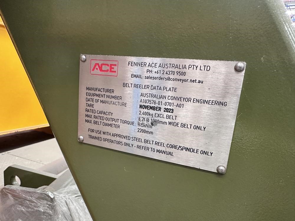 2023 Fenner ACE Australia Conveyor belt reeler rated 6.2 T @ 1200 mm belt