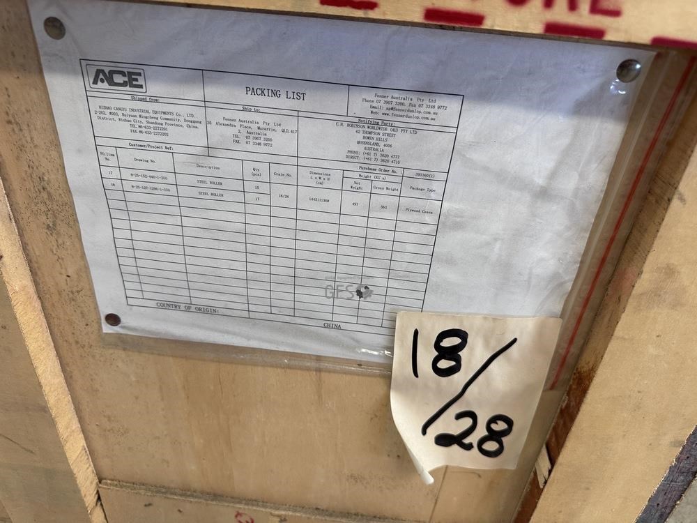 - Model 460 mm Steel conveyor rollers 393360-0823 x 15 & x 17 in crate As New