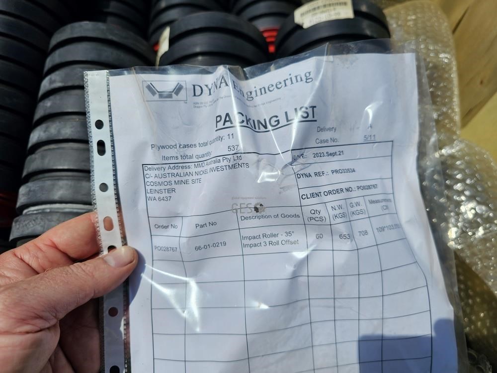Dyna Engineering 400 mm 35 degree Impact 3 roll offset x 60 in crate As New