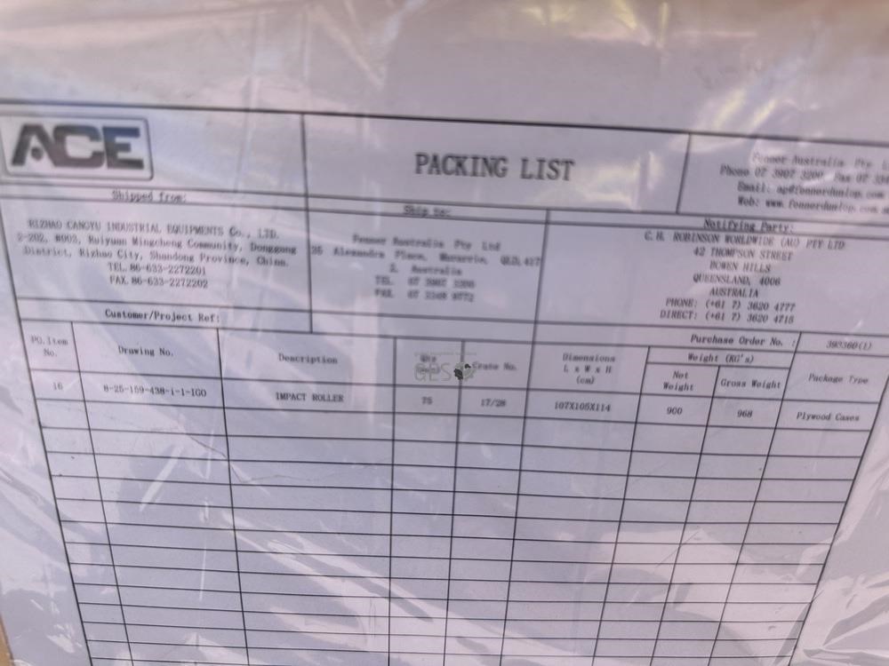 - Model 330 mm impact conveyor rollers part 393360-0823 x 75 in crate As New