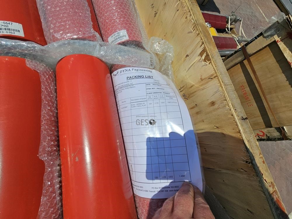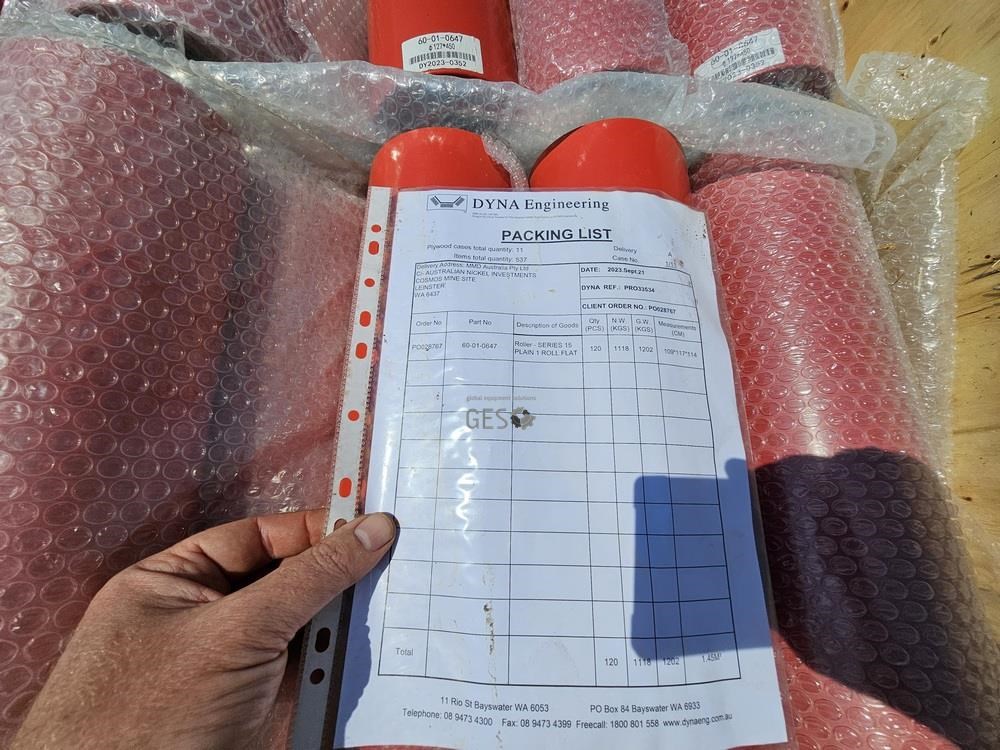 Dyna Engineering Series 15 plain steel conveyor flat rollers x 120 As New