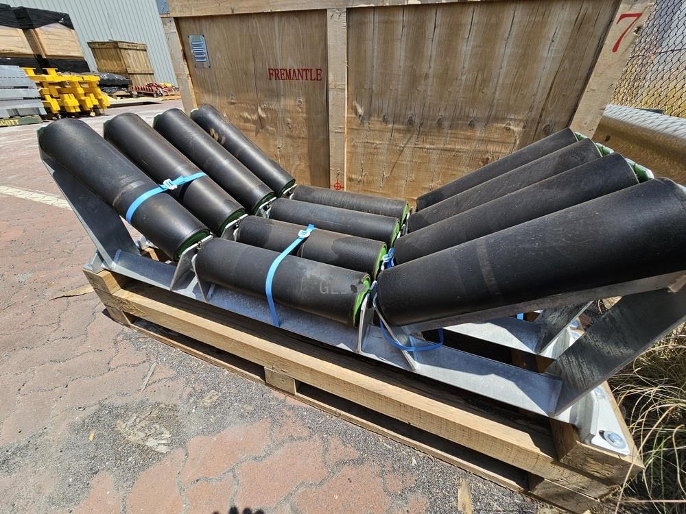 Conveyor idle carriers fitted with 3 impact rollers x 4 on pallet As new