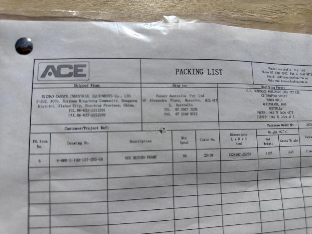 ACE Fenner Conveyor idler Vee return frame x 88 in crate As New