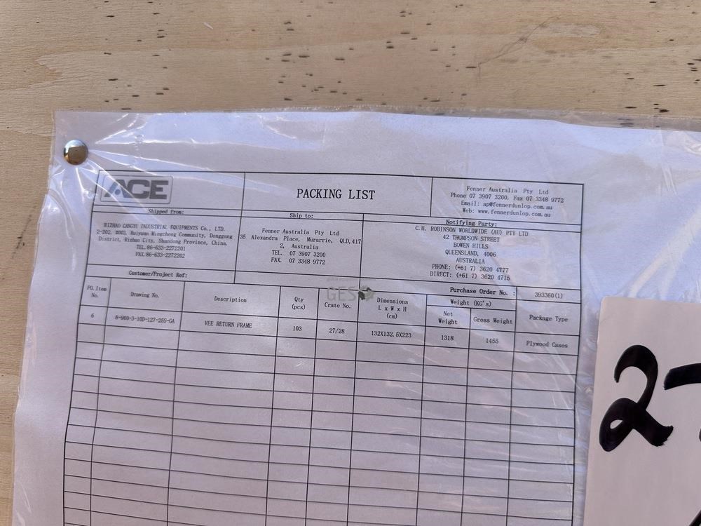 ACE Fenner Conveyor idler Vee return frame x 103 in crate As New