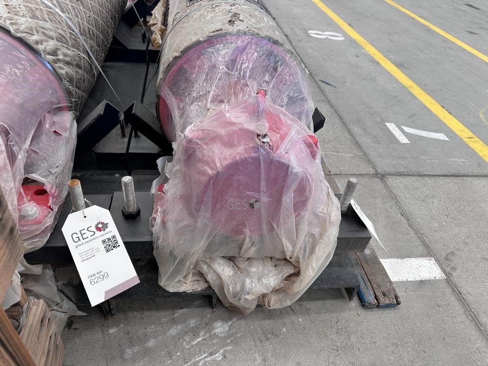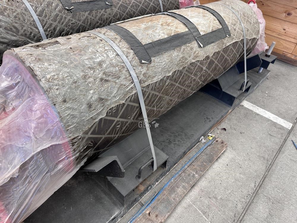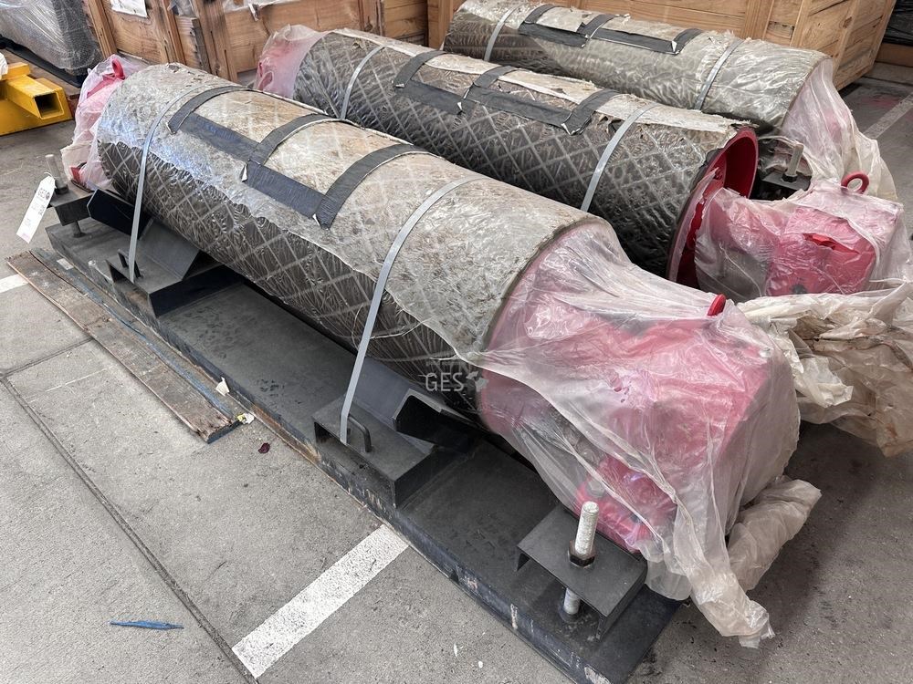 - Model 1350 mm x 400 mm diam live shaft non drive pulley on transport frame unused