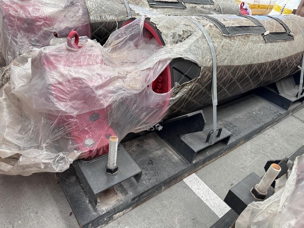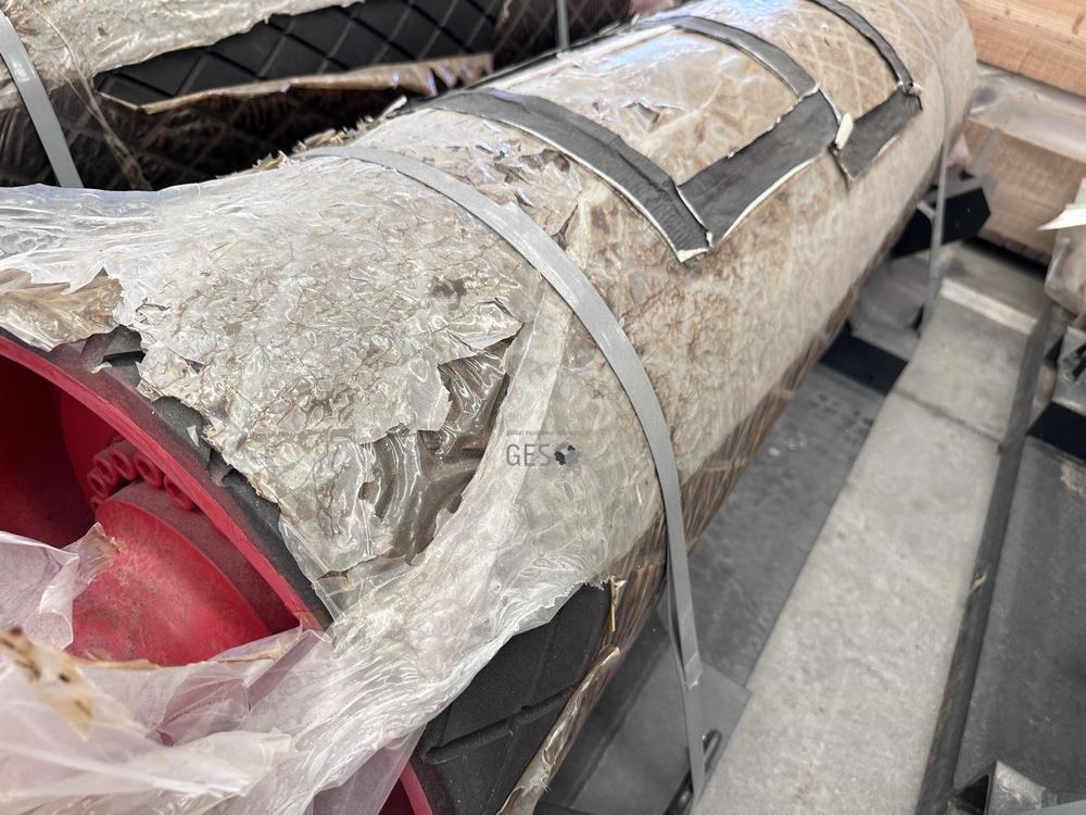 - Model 1350 mm x 400 mm diam live shaft non drive pulley on transport frame unused