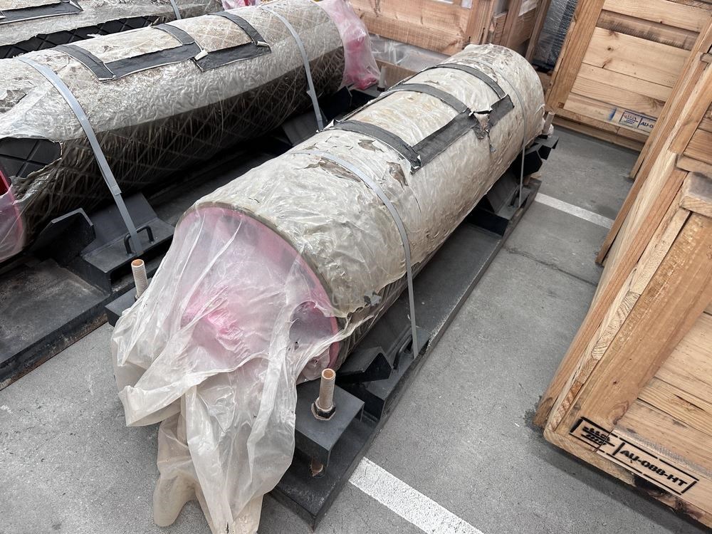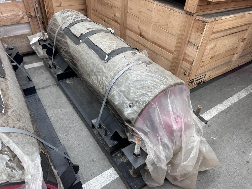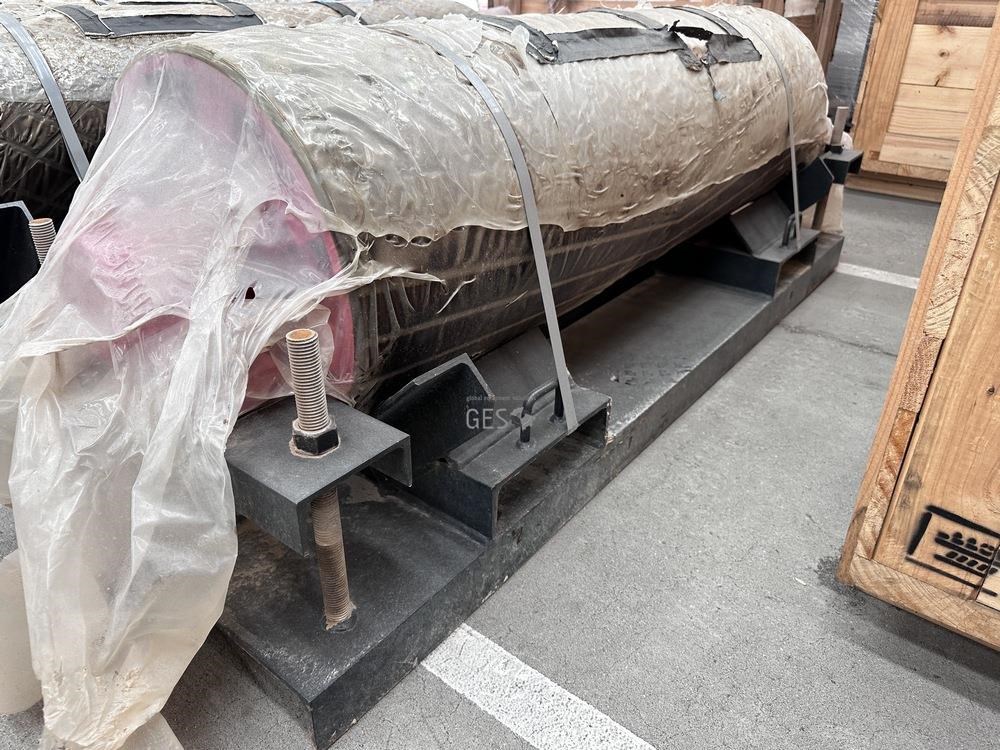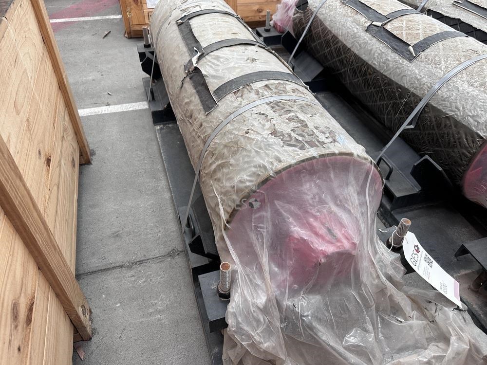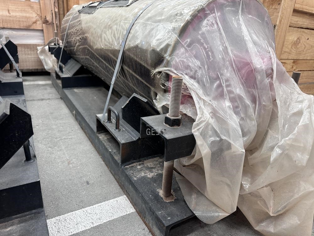 - Model 1350 mm x 400 mm diam live shaft non drive pulley on transport frame unused