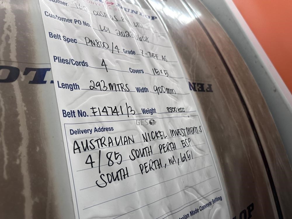 Fenner Dunlop 299m x 900mm conveyor belt spec PN800/4 TUFF AS