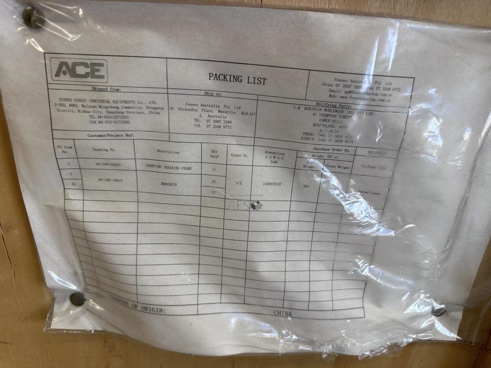 ACE Carry Training Frames x 11 & Various Brackets x 39.Offered for sale in "As Is Where Is" condition lifted on to buyers transport ex Kewdale, WA, Australia
