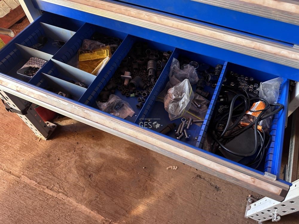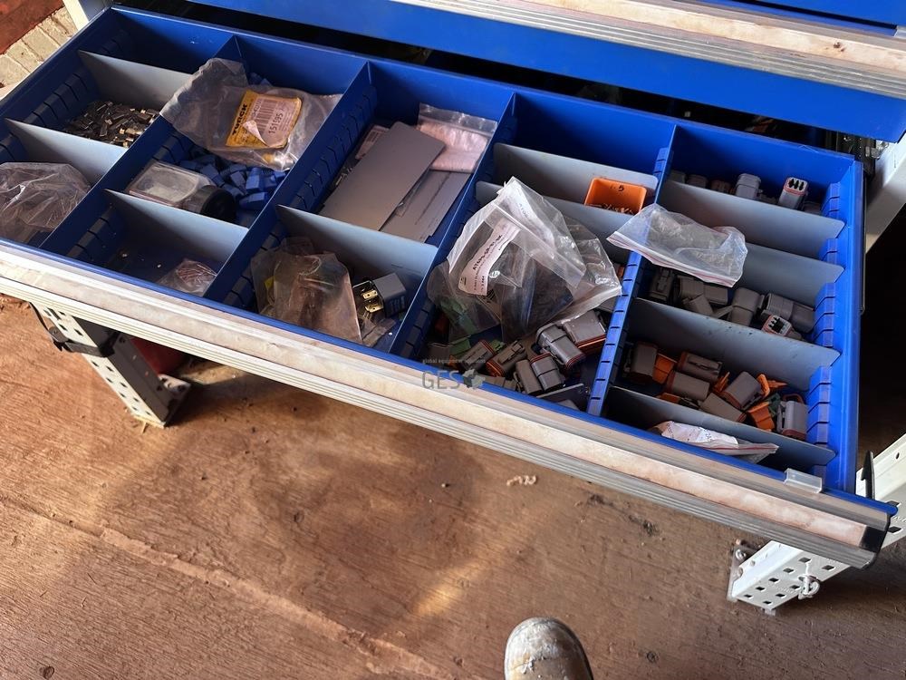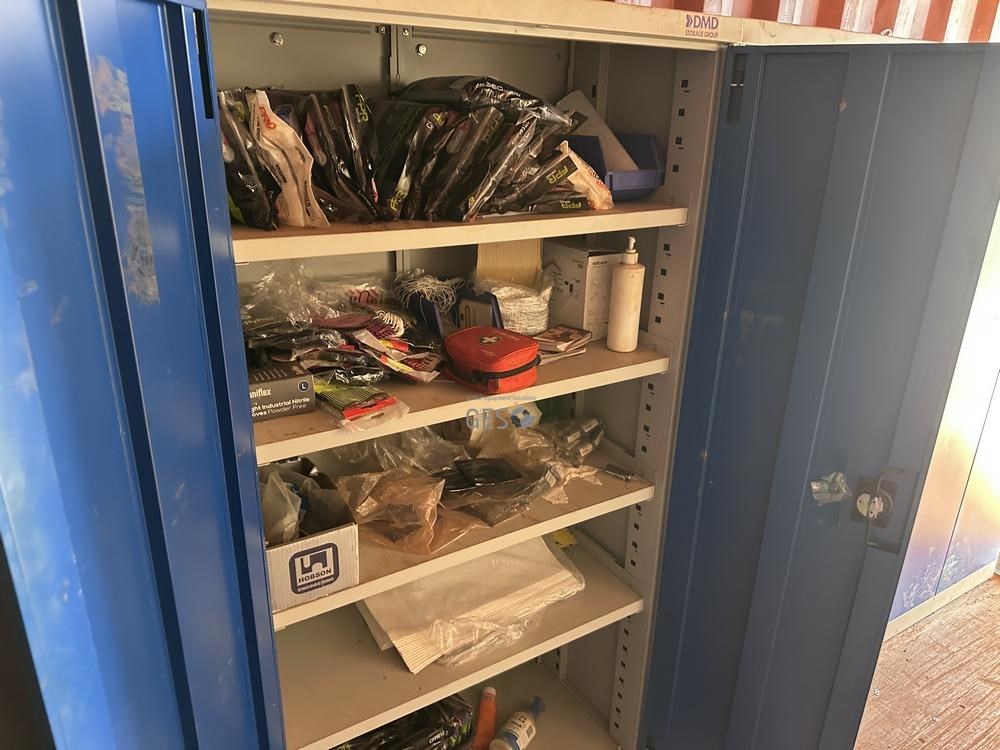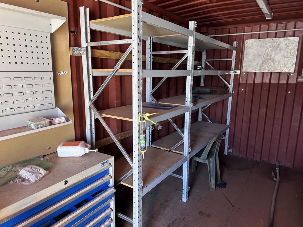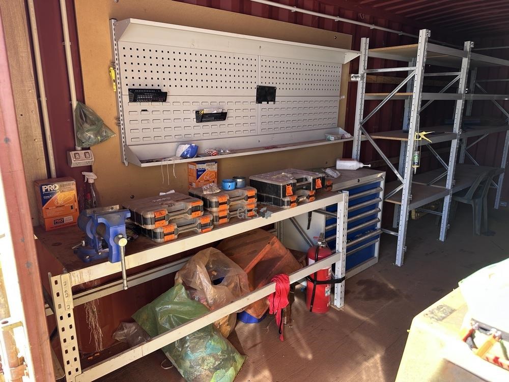 • Model 6 mtr Container C/w bench, drawers, shelving, cupboards & contents electrical fit out