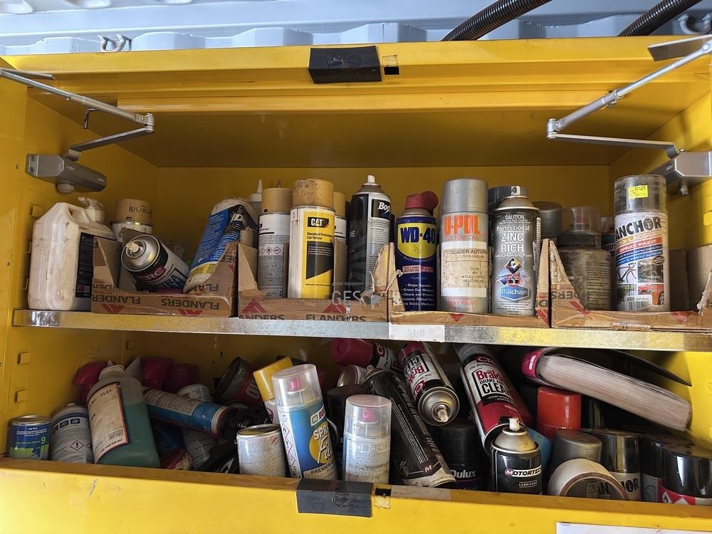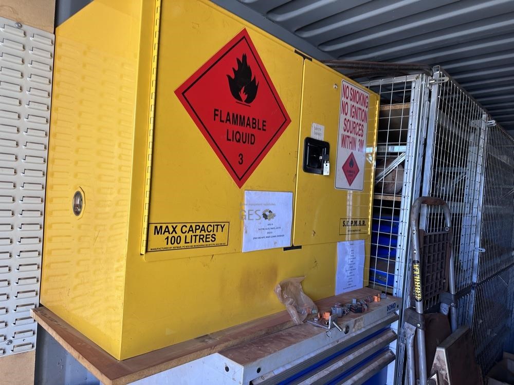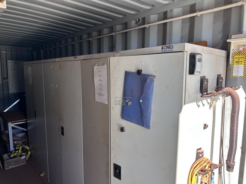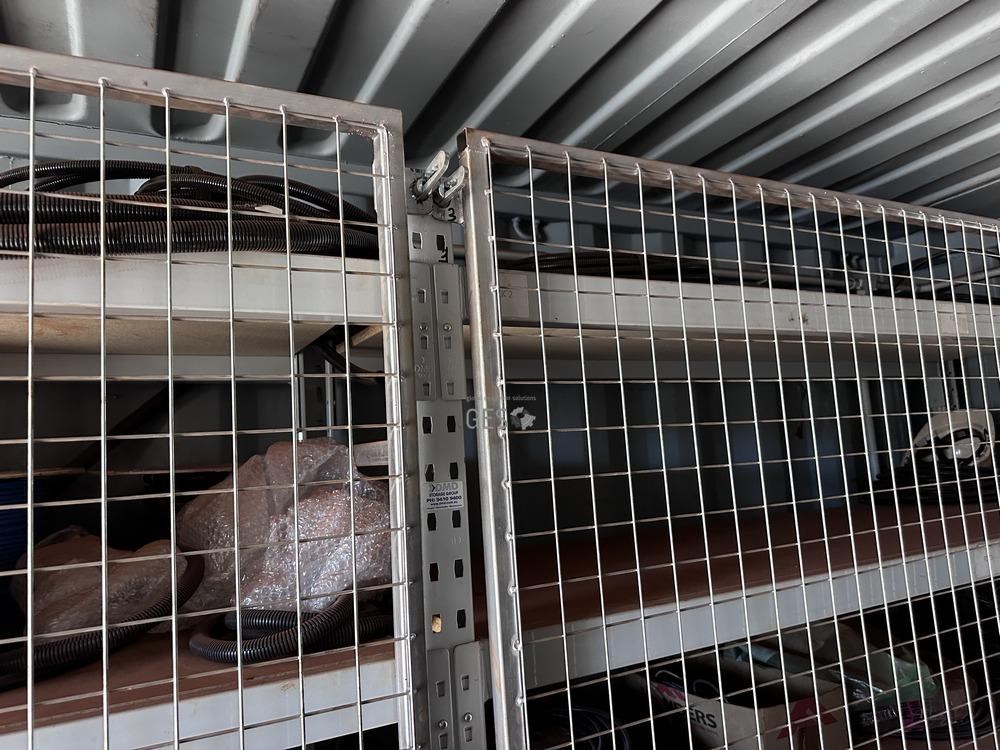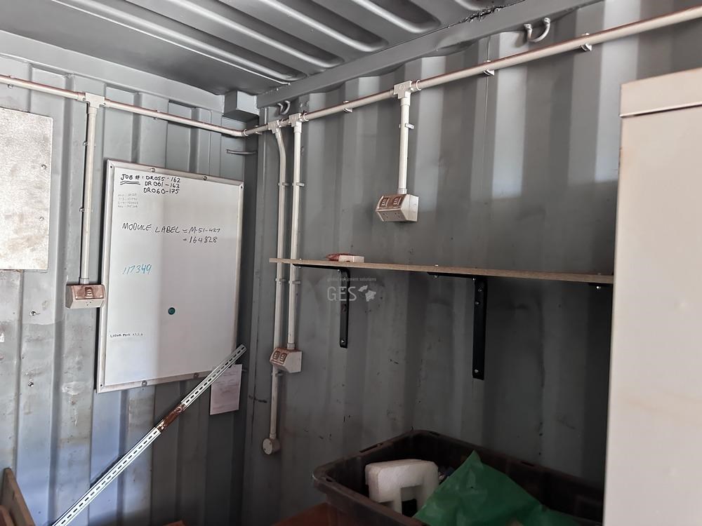 - Model 6 mtr Container C/w bench, drawers, caged shelving, cupboards & contents electrical fit out