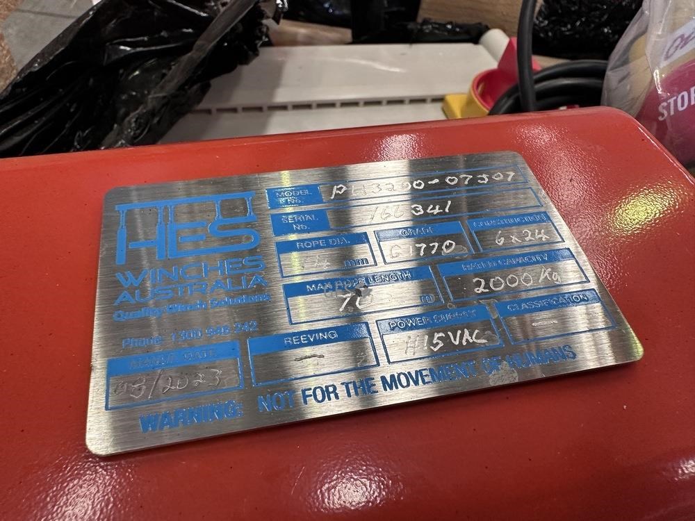 HES Winches Australia OZWinch 2000 kg 70 mtr 415 volt planetary winch As New. Dimensions: 1 x 0.5 mtrs wide x 0.6 mtr high. Offered for sale in "As Is Where Is" condition lifted on to buyers transport ex Kewdale, WA, Australia.