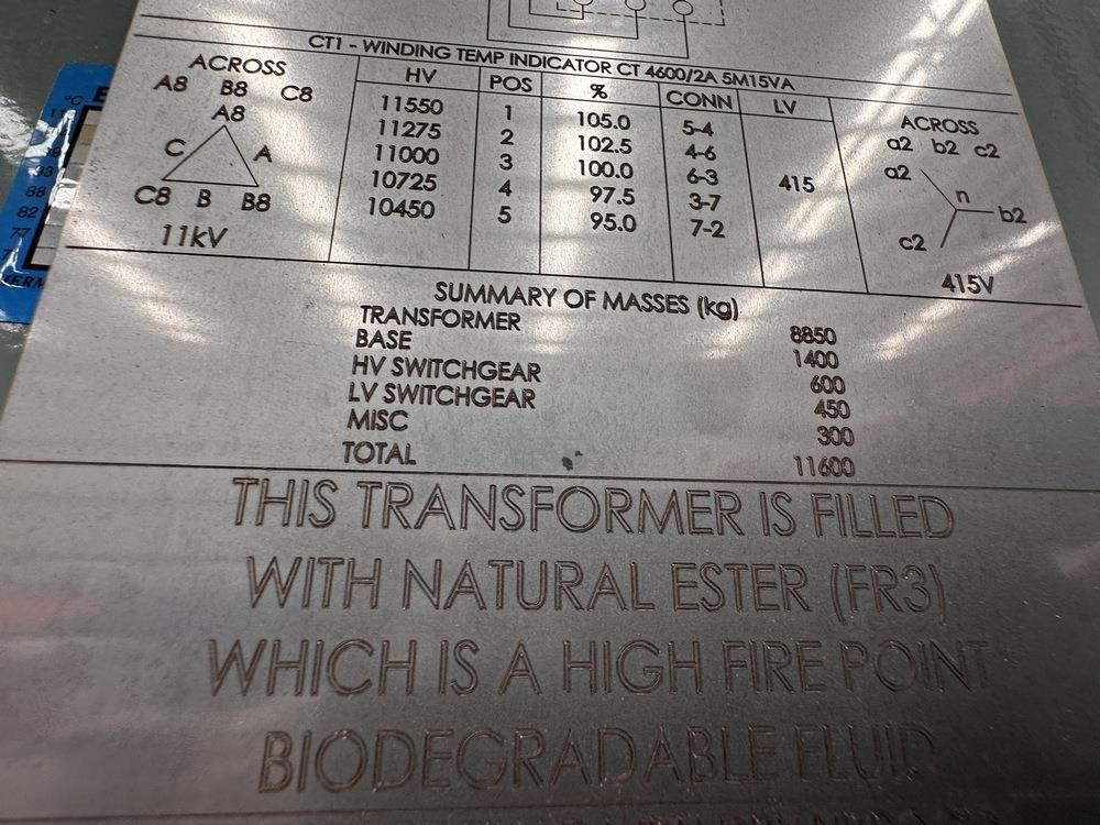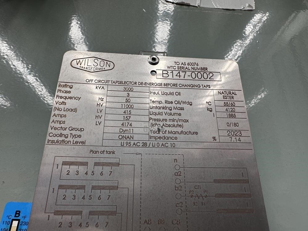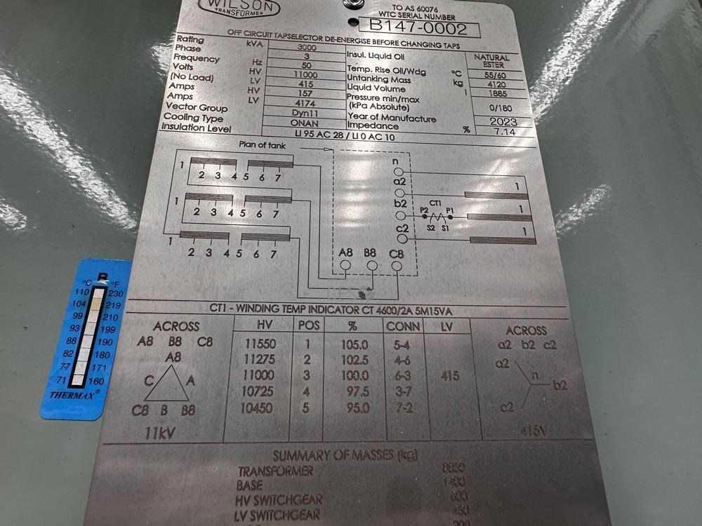 2023 Wilson 3000 kVA 11/0.415 KV Dyn11 ONAN TX, Siemens RMU & NHP 3000 Amp DB