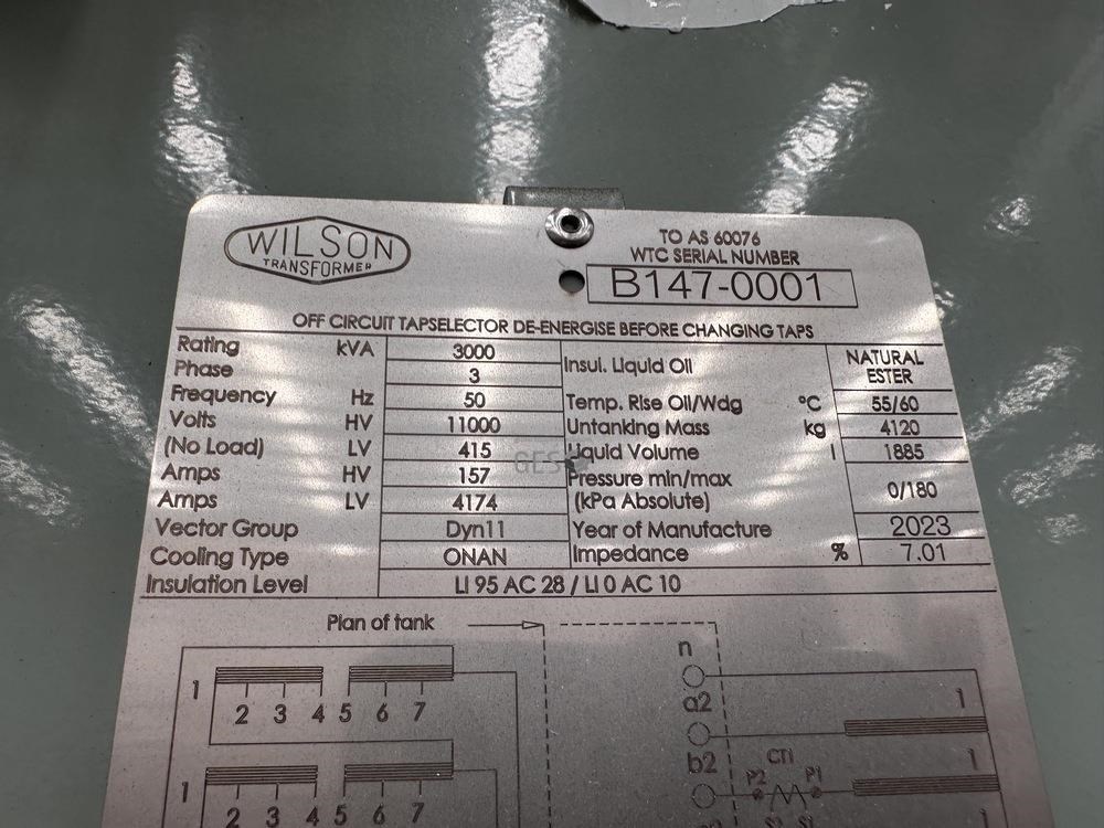 2023 Wilson 3000 kVA 11/0.415 KV Dyn11 ONAN TX, Siemens RMU & NHP 3000 Amp DB