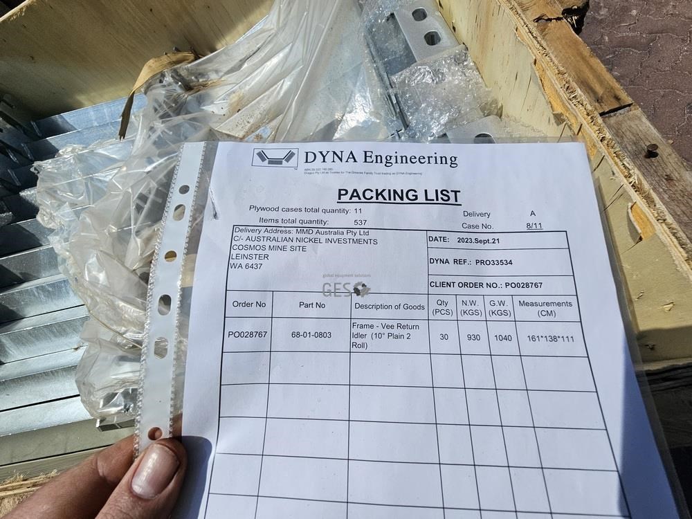 Dyna Engineering Steel conveyor vee return idler x 30 in crate As New